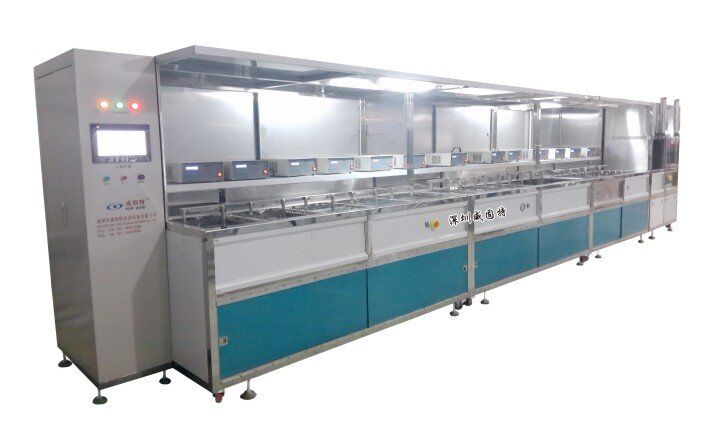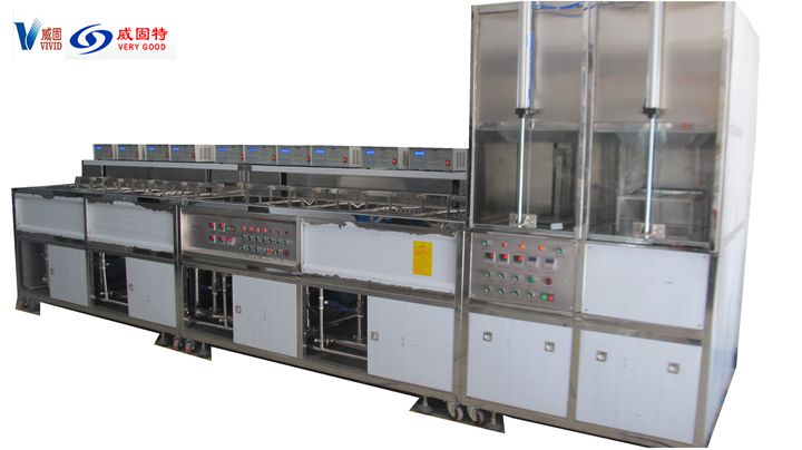 深圳威固特VGT-1509FT角反射器光學(xué)超聲波清洗機設(shè)備共有15個功能槽,配置有拋動系統(tǒng)、循環(huán)過濾系統(tǒng)、自動恒溫系統(tǒng)、超聲波清洗系統(tǒng)、定時系統(tǒng)、框架系統(tǒng)、CO2滅火系統(tǒng)等。設(shè)備采用環(huán)保型水溶劑洗滌、純水漂洗,為環(huán)保型清洗系統(tǒng)。